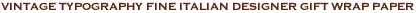 the love of typography is celebrated in this unique + stylishly chic decorative paper! printed in charcoal black ink with weathered paper affects on luxurious 100% cotton italian paper. printed on 20" x 28" luxurious 100% cotton italian paper. one sheet is large enough to wrap a medium sized shirt box. made in italy.