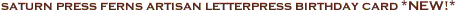 fabulous ferns! from the flora + fauna birthday series, this beautiful birthday card features a vintage drawing by john heywood (1884) artisan letterpress printed in saturated colour on a generously sized 5" x 7" folded white card with a fine deckle edge on the cover. antique letterpress printing. blank inside for your personal greeting.