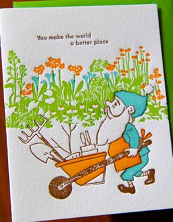 individual letterpress card paired with a coordinating spring green envelope